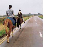 When passing horses, allow plenty of space, slow down and stop if you need to. Animals are easily frightened by sudden or loud noises and can quickly become uncontrollable, so don't sound your horn or rev the engine.